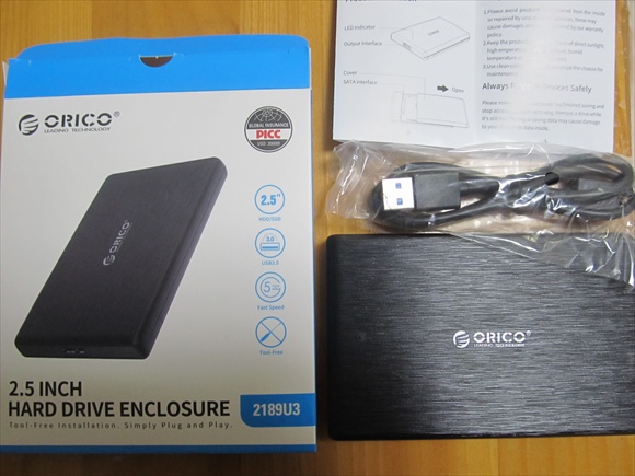 ORICOという中国メーカーの2.5インチHDDケースで、お値段は約900円でした。