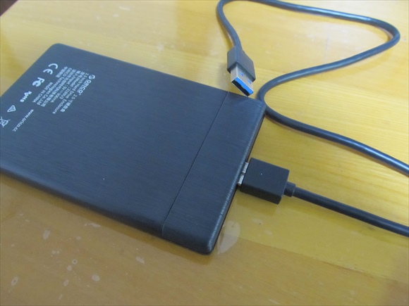 このORICOのHDDケースの良い点は、USBケーブルだけでPCと接続できるところ。